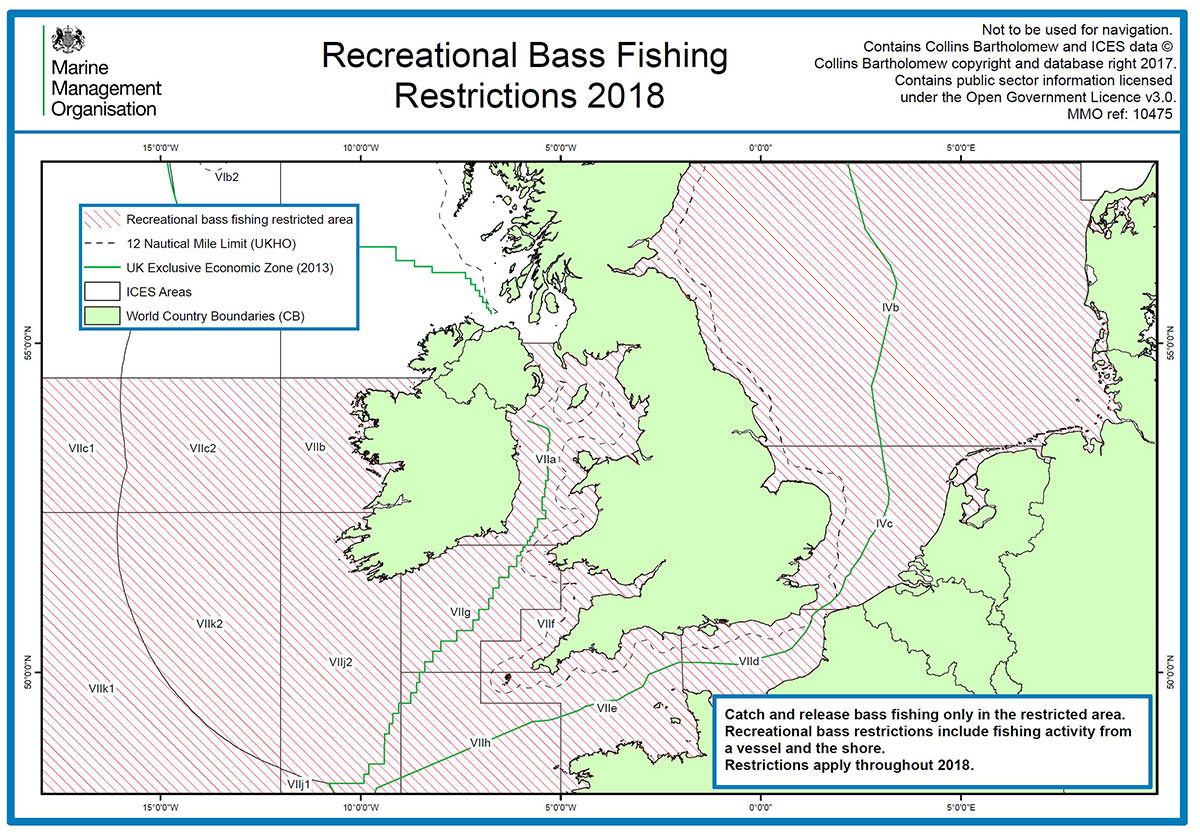 As expected recreational sea anglers are being hit hard with the formal publication of EU Regulation 2018/120. While the commercial sector have had their quotas reduced the recreational sea angler is not permitted to retain any bass caught in ICES divisions 4b, 4c, 7a to 7k (see map below). A catch and release fishery is permitted in theses areas. The anglers further south fishing in in ICES divisions 8a and 8b have had their catches limited to three per day.