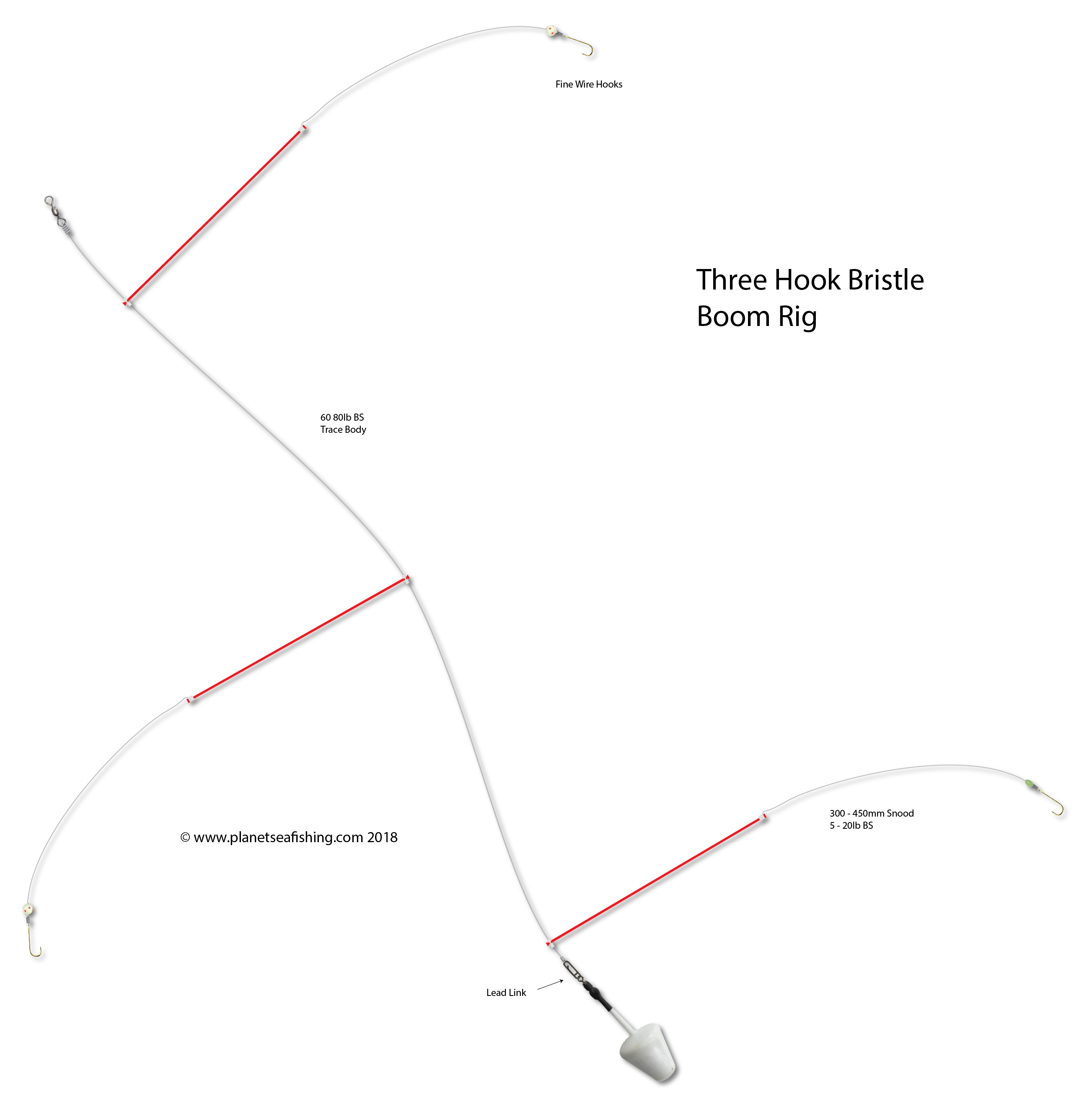 The bristle boom rig is a short to medium distance shore rig also useful for scratching from the boat either uptiding or casting about with rolling lead.