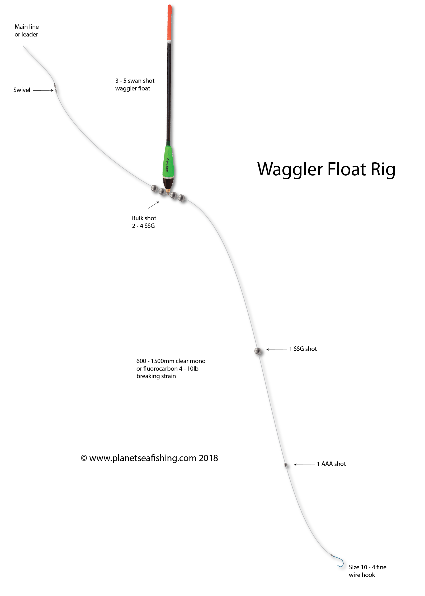 1 x Waggler float; size depends upon the weight being supported including the bait